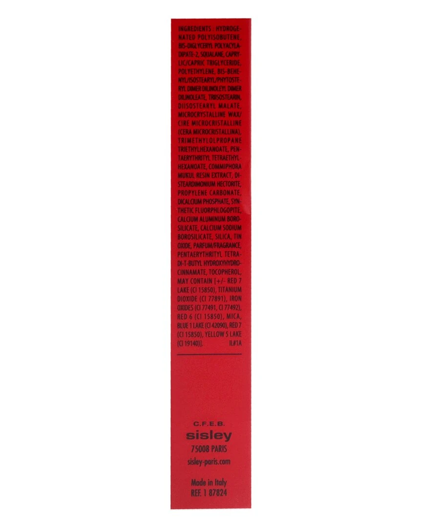 - Active ingredients: Hydrogenated Polyisobutene, Bis-Diglyceryl Polyacyladipate-2, Squalane, Caprylic/Capric Triglyceride, Polyethylene, Bis-Behenyl/Isostearyl/Phytosteryl Dimer Dilinoleyl Dimer Dilinoleate, Triisostearin, Diisostearyl Malate, Dicalcium Phosphate, Microcrystalline Wax/Cire Microcristalline (Cera Microcristallina), Trimethylolpropane Triethylhexanoate, Calcium Sodium Borosilicate, Calcium Aluminum Borosilicate, Pentaerythrityl Tetraethylhexanoate, Commiphora Mukul Resin Extract, Disteardimonium Hectorite, Silica, Propylene Carbonate, Tin Oxide, Fragrance (Parfum), Pentaerythrityl Tetra-Di-T-Butyl Hydroxyhydrocinnamate, Tocopherol, May Contain [+/- Red 7 Lake (Ci 15850), Titanium Dioxide (Ci 77891), Mica (Ci 77019), Red 28 Lake (Ci 45410), Iron Oxides (Ci 77491, Ci 77492, Ci 77499), Red 6 (Ci 15850), Yellow 5 Lake (Ci 19140), Red 22 Lake (Ci 45380), Yellow 6 Lake (Ci 15985), Manganese Violet (Ci 77742), Blue 1 Lake (Ci 42090)]. Il#3A.