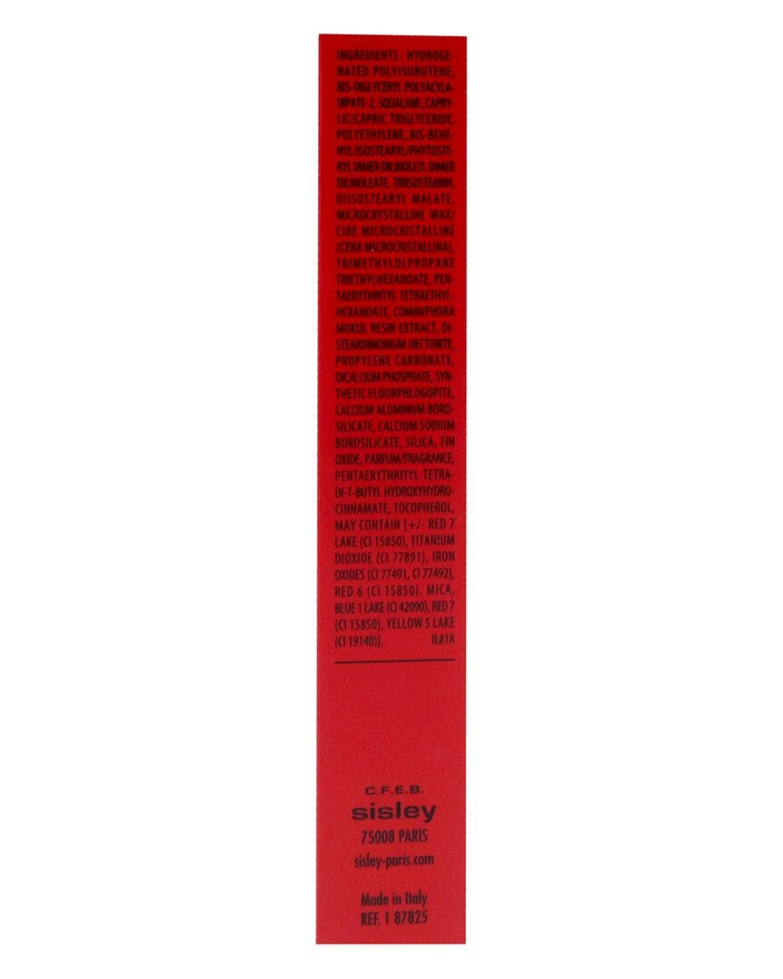 - Active ingredients: Hydrogenated Polyisobutene, Bis-Diglyceryl Polyacyladipate-2, Squalane, Caprylic/Capric Triglyceride, Polyethylene, Bis-Behenyl/Isostearyl/Phytosteryl Dimer Dilinoleyl Dimer Dilinoleate, Triisostearin, Diisostearyl Malate, Dicalcium Phosphate, Microcrystalline Wax/Cire Microcristalline (Cera Microcristallina), Trimethylolpropane Triethylhexanoate, Calcium Sodium Borosilicate, Calcium Aluminum Borosilicate, Pentaerythrityl Tetraethylhexanoate, Commiphora Mukul Resin Extract, Disteardimonium Hectorite, Silica, Propylene Carbonate, Tin Oxide, Fragrance (Parfum), Pentaerythrityl Tetra-Di-T-Butyl Hydroxyhydrocinnamate, Tocopherol, May Contain [+/- Red 7 Lake (Ci 15850), Titanium Dioxide (Ci 77891), Mica (Ci 77019), Red 28 Lake (Ci 45410), Iron Oxides (Ci 77491, Ci 77492, Ci 77499), Red 6 (Ci 15850), Yellow 5 Lake (Ci 19140), Red 22 Lake (Ci 45380), Yellow 6 Lake (Ci 15985), Manganese Violet (Ci 77742), Blue 1 Lake (Ci 42090)]. Il#3A.